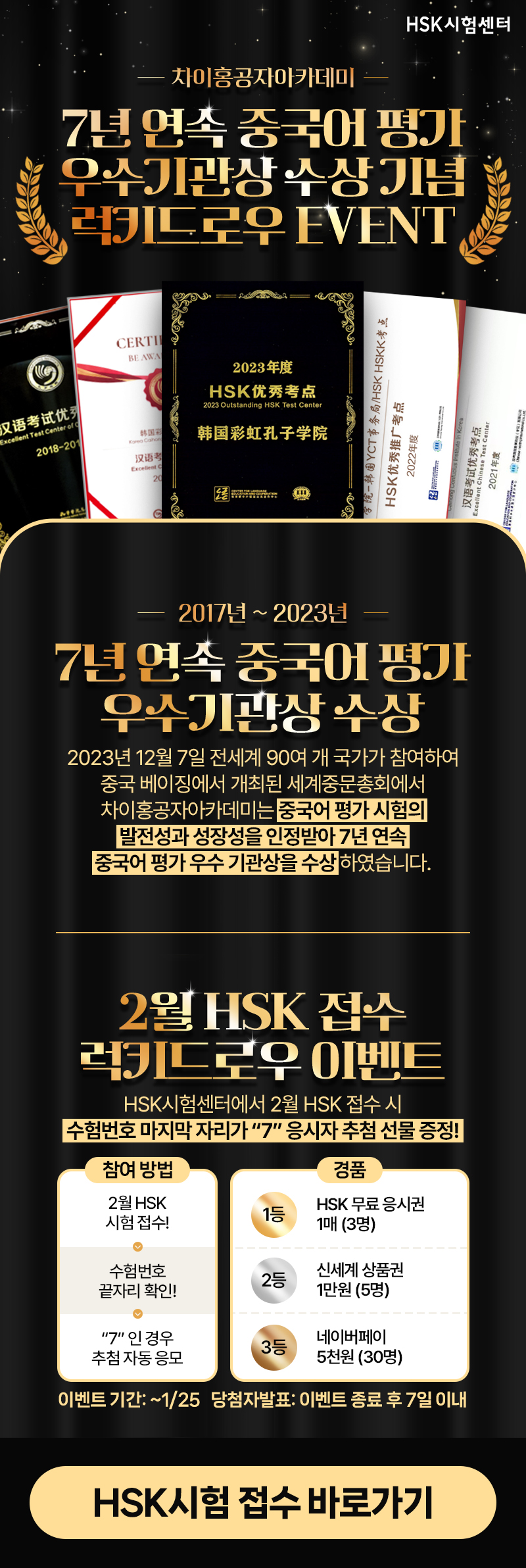 HSK[이벤트] 7년 연속 중국어 평가 우수기관상 수상 기념 럭키드로우 EVENT!!