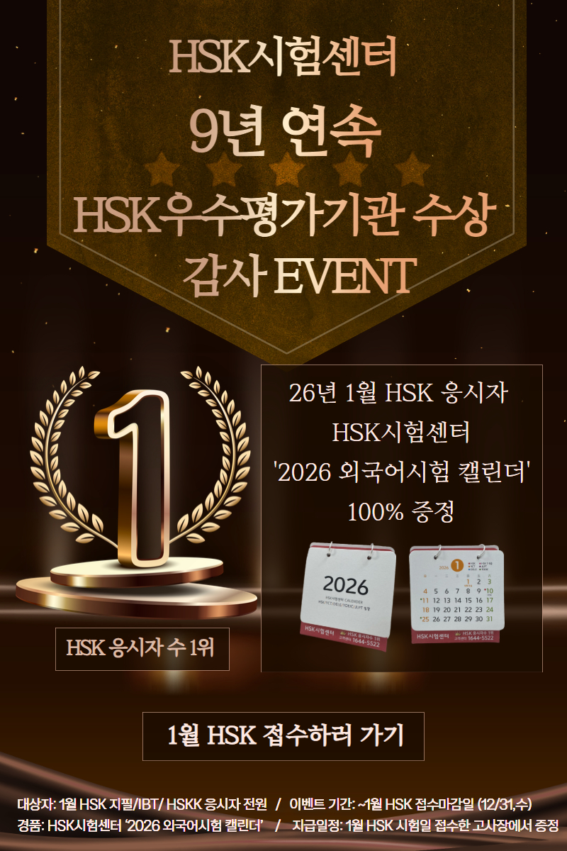 [이벤트] 26년 1월 HSK 접수하면 누구나! 100% 증정