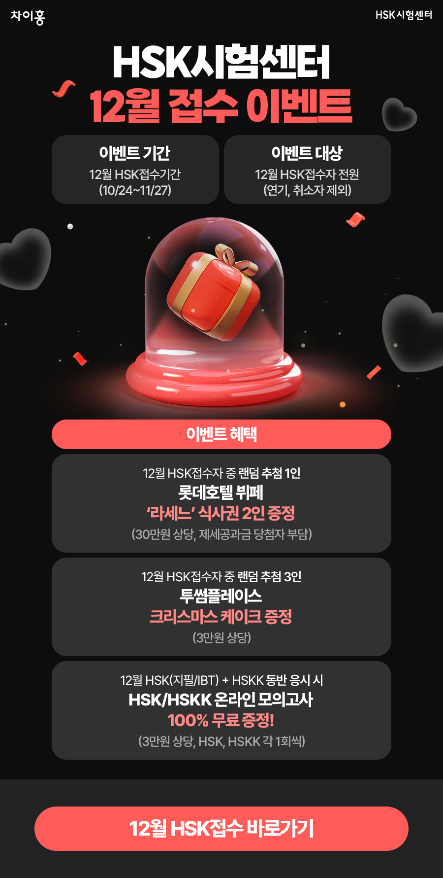 HSK[이벤트] HSK시험센터 연말응원제 12월 HSK 접수만 하면 연말 선물 펑펑♥ (~11/27)