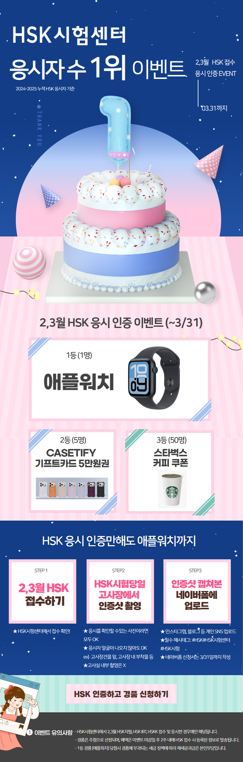 [이벤트] 2,3월 HSK 접수 이벤트! 접수하고 애플워치 받자!