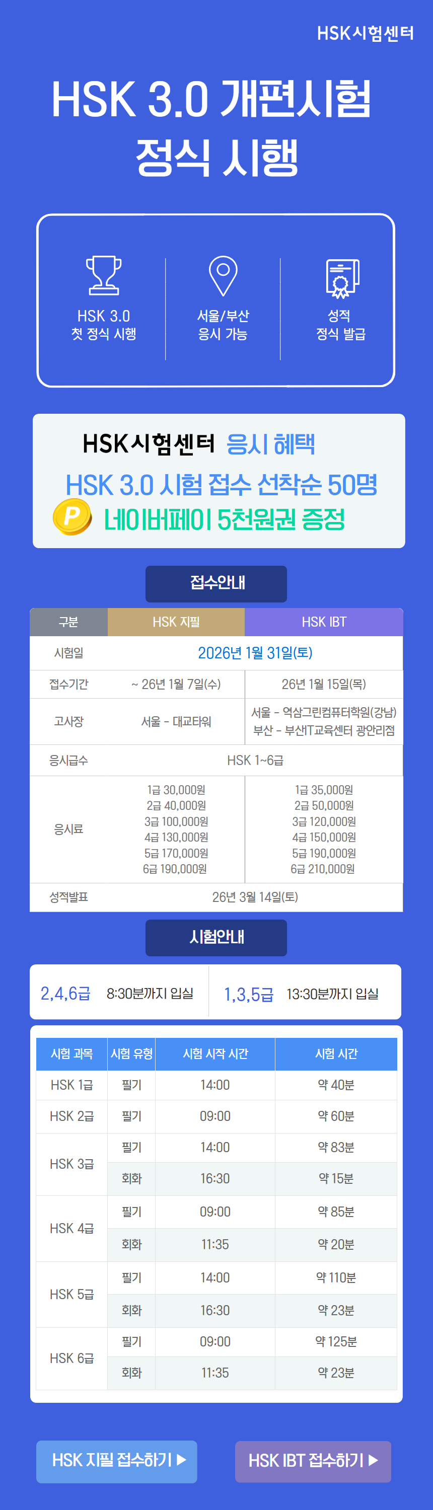 HSK 3.0 개편시험 정식 시행 (26년 1월) 안내